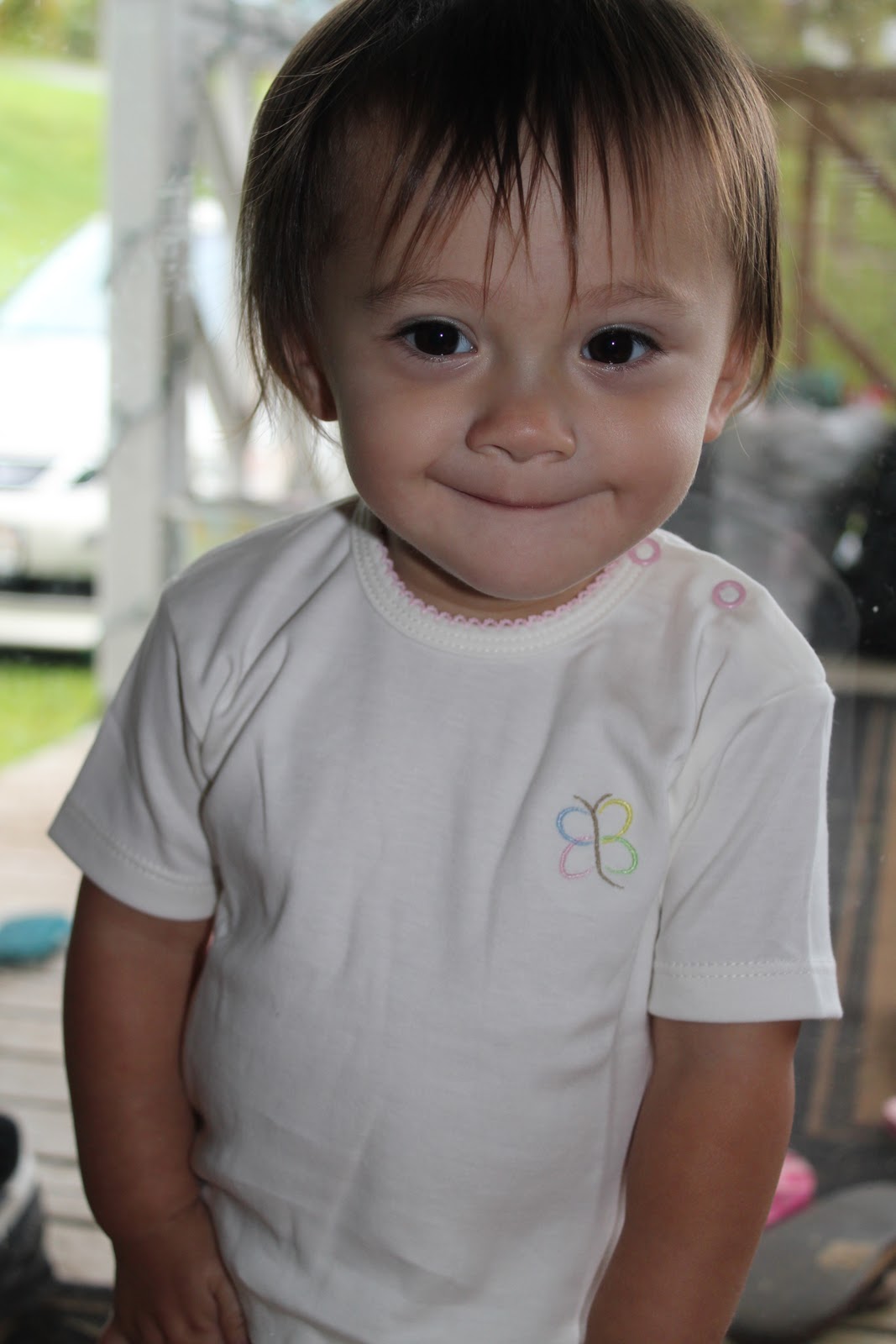 I recently recieved the most wonderful outfit for my little girl.   It is a pant and shirt set from Baby Keba.  What I love most about it is that it is super soft,  and feels wonderful against your skin!  If only I could get it in my size!  The outfit is made out of 100% Organic Pima Cotton.  This is a wonderful set, and very comfortable for my daughter.  In fact, she’s wearing it right now!  And it is sure to become one of my favorites for her.  It is of a cream color, with a little butterfly embroidered on both the top and pants.  Simple, yet very cute and stylish!  You can find more baby clothes up to size 6-9 months on their website here.  My 15 month old is about 20 lbs. and the 6-9 month pant set fits her well.  If you’re looking for some nice, quality clothes for a little one, check out Baby Keba!