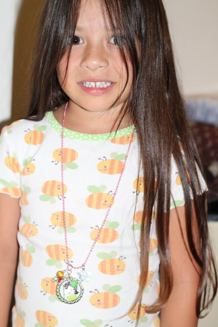 Who would have thought that Bottle Caps can be turned into super cute pieces of jewelry?  Well, they can!  Ingredients of a Woman is a shop on etsy, and among other things you can find necklaces made out of bottle caps!  They really are nice.  My daughter got a necklace with a hula girl on it along with a variety of beads and a butterfly charm.  It even has her name on it!  The pendant is on a pink ball chain.  The great thing about the ball chain is that you can easily make it shorter if it’s too long.  My daughter adores her necklace, and was thrilled to see it personalized with her name!  She was so excited to wear it to school to show it off to her friends.  I love how these necklaces can be customized, which makes it even more special.  Valentine’s Day is right around the corner and these would really make a wonderful gift for children or adults.