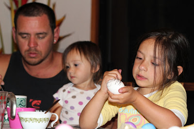 Kaimahie was the first to EAT an egg! She couldn’t wait, and cracked one open as soon as it was dyed! too cute…