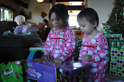 We opened presents Christmas morning…and both the girls were very excited!  I wasn’t sure what to expect from my 15 month old…but she actually figured out, and enjoyed opening gifts…until she saw her sisters gift from Santa.  My oldest daughter got the “Go-Go my Walking Puppy” from Santa, and when her baby sister saw it…she would NOT step away from the box! lol..she wanted that puppy so bad.  One of the best parts of Christmas is seeing the JOY in my daughters faces as they open up their gifts!