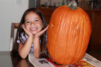 What adorable girls! I get you got a huge haul of candy. 🙂 Did you carve that enormous pumpkin? Ours lasted only a week and I had to sneak it out to the dumpster before my son noticed it was gone.